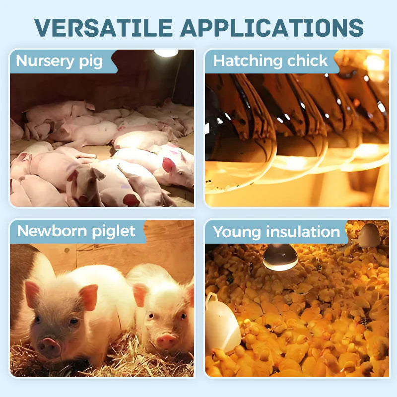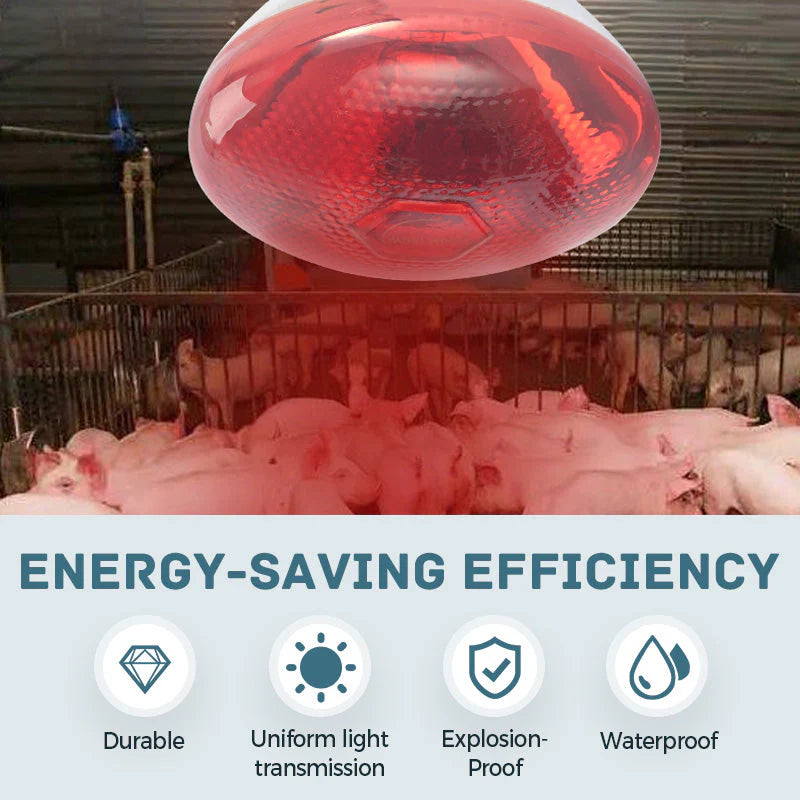 ODPORNOŚĆ NA WODĘ I WYBUCHOWOŚĆ – Żarówki te, zaprojektowane z myślą o wymagających warunkach hodowli zwierząt gospodarskich, charakteryzują się wodoodporną i przeciwwybuchową konstrukcją, która zapewnia ciągłą pracę nawet w wilgotnych oborach lub szopach na zewnątrz. Dzięki zminimalizowaniu ryzyka uszkodzeń i wydłużeniu żywotności produktu rolnicy mogą obniżyć koszty wymiany i utrzymać bezpieczniejszy, bardziej niezawodny system ogrzewania.
