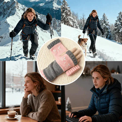 Pozostań ciepła i pokaż swoją osobowość dzięki damskim dzianym rękawiczkom bez palców z kotem.