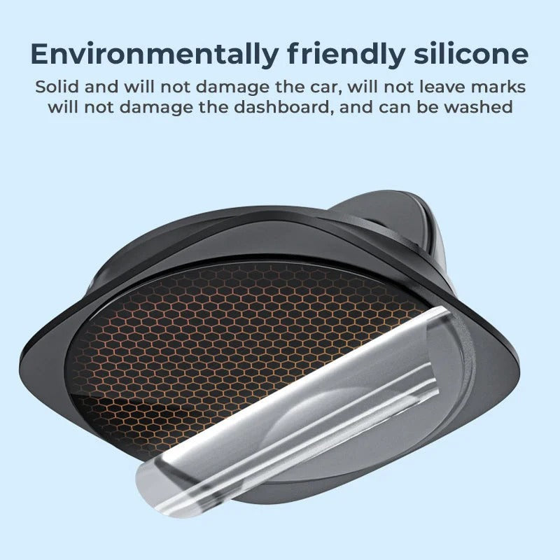 - Ten uchwyt ma potrójną strukturę antypoślizgową, łączącą nano żel, silikonowy automatyczny zatrzask i silikonowy antypoślizgowy haczyk. Ta potrójna struktura zapewnia bezpieczeństwo telefonu, zapewniając maksymalną stabilność i kompleksową ochronę antypoślizgową i przeciwupadkową, niezależnie od warunków jazdy.