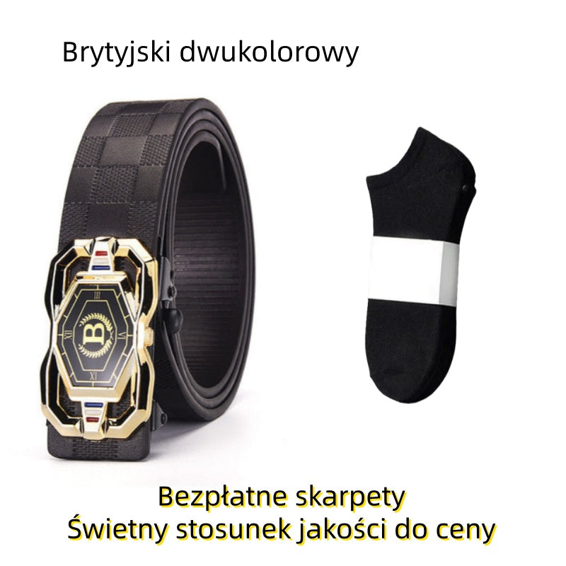 🐊 Skórzany pasek męski z eleganckim wzorem krokodylowej skóry, z automatyczną sprzączką i wykonany ze skóry bydlęcej.