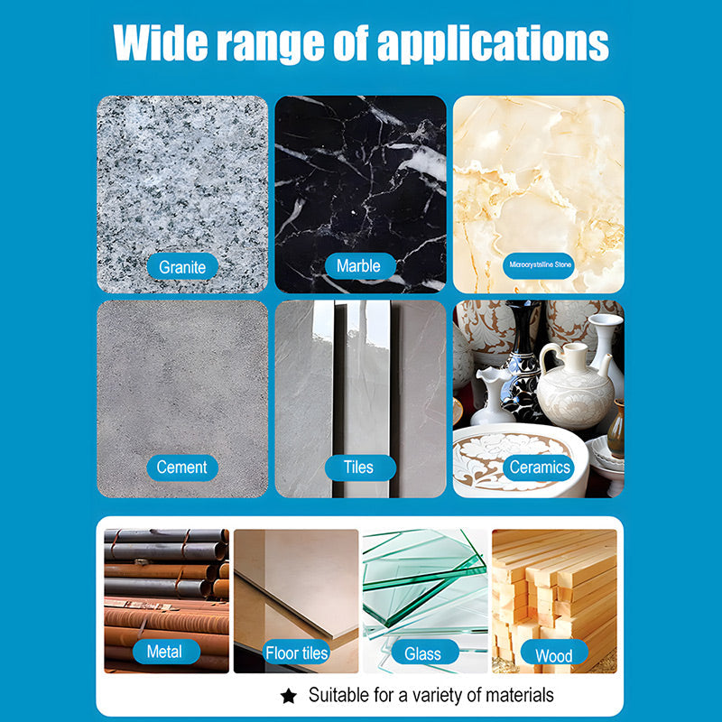 Szerokie zastosowanie: Nadaje się do różnych materiałów, w tym płytek, ceramiki, granitu, marmuru, betonu, metalu, szkła i drewna, do szlifowania, renowacji, przycinania krawędzi i gratowania.