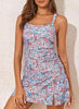2-częściowy zestaw Tankini Vintage: Skirtini Tankini, Tankini Top z Bikini Bottom, Ruched Swim Tank Top, Square Neck Tankini Set with Side Slit Skirt, Open Back Bathing Suit, Push Up Bathing Suit with Removable Soft Padding oferuje doskonałe wsparcie i podkreśla kształty.