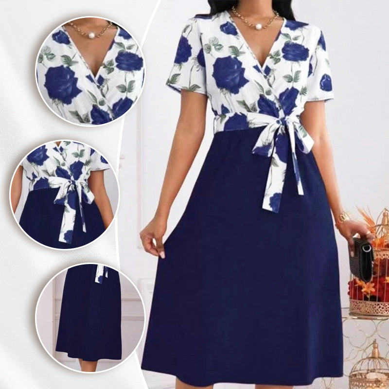 ELEGANCKIE WYKOŃCZENIE: Sukienka ma klasyczny krój kopertowy, który naturalnie dopasowuje się do sylwetki, tworząc eleganckie drapowanie podkreślające figurę. Nakładający się panel z przodu zapewnia bezpieczne pokrycie, umożliwiając jednocześnie dopasowanie sukienki dla wygody i pewności siebie.