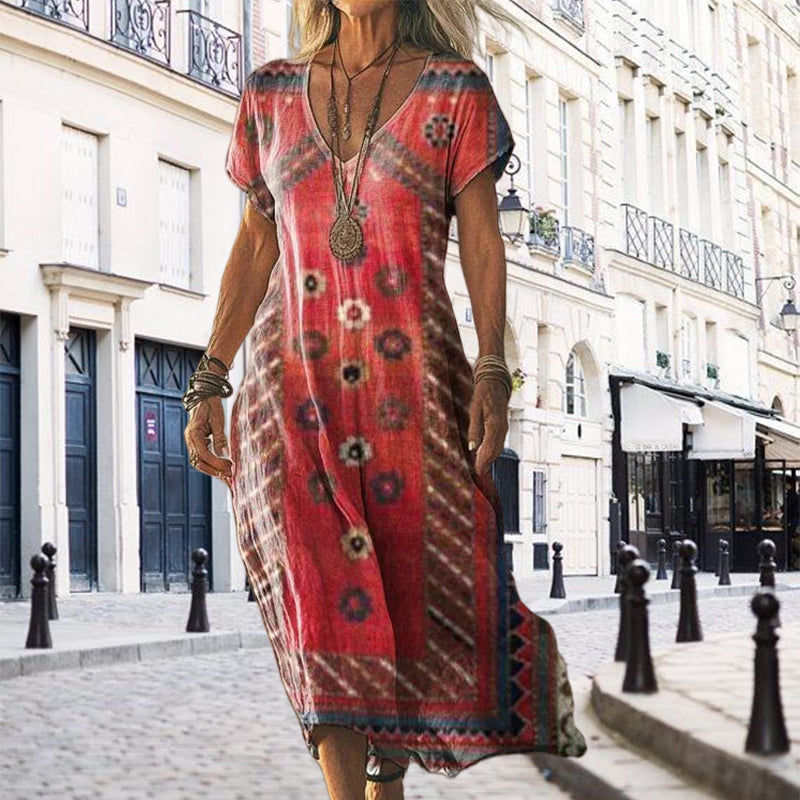 Pakiet zawiera: 1 * Damska drukowana długa sukienka z krótkim rękawem z dekoltem w szpic