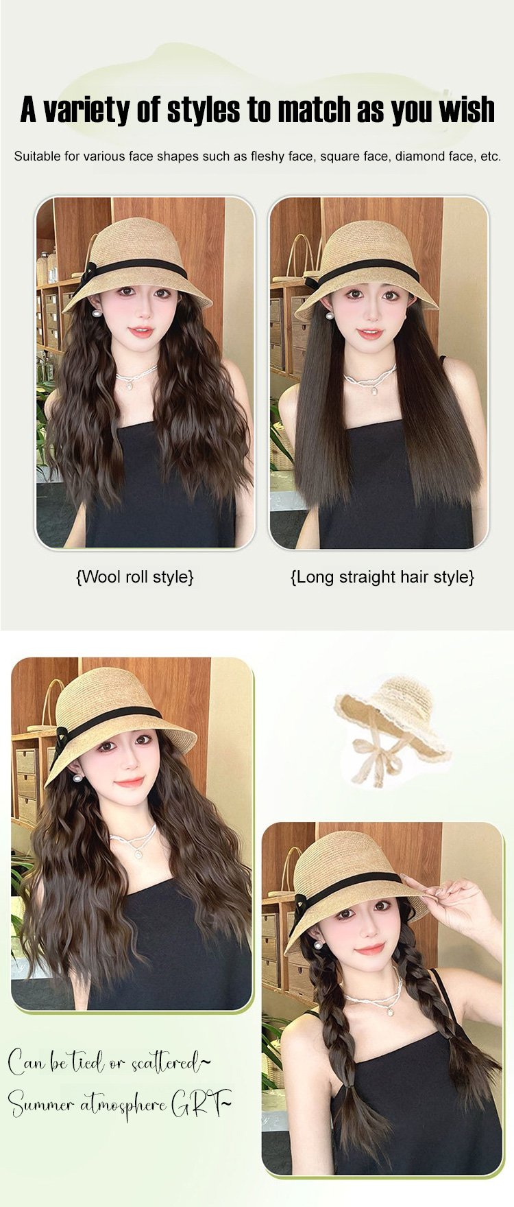 Zawartość opakowania: 1 * Słomkowy kapelusz z wbudowanymi perukami